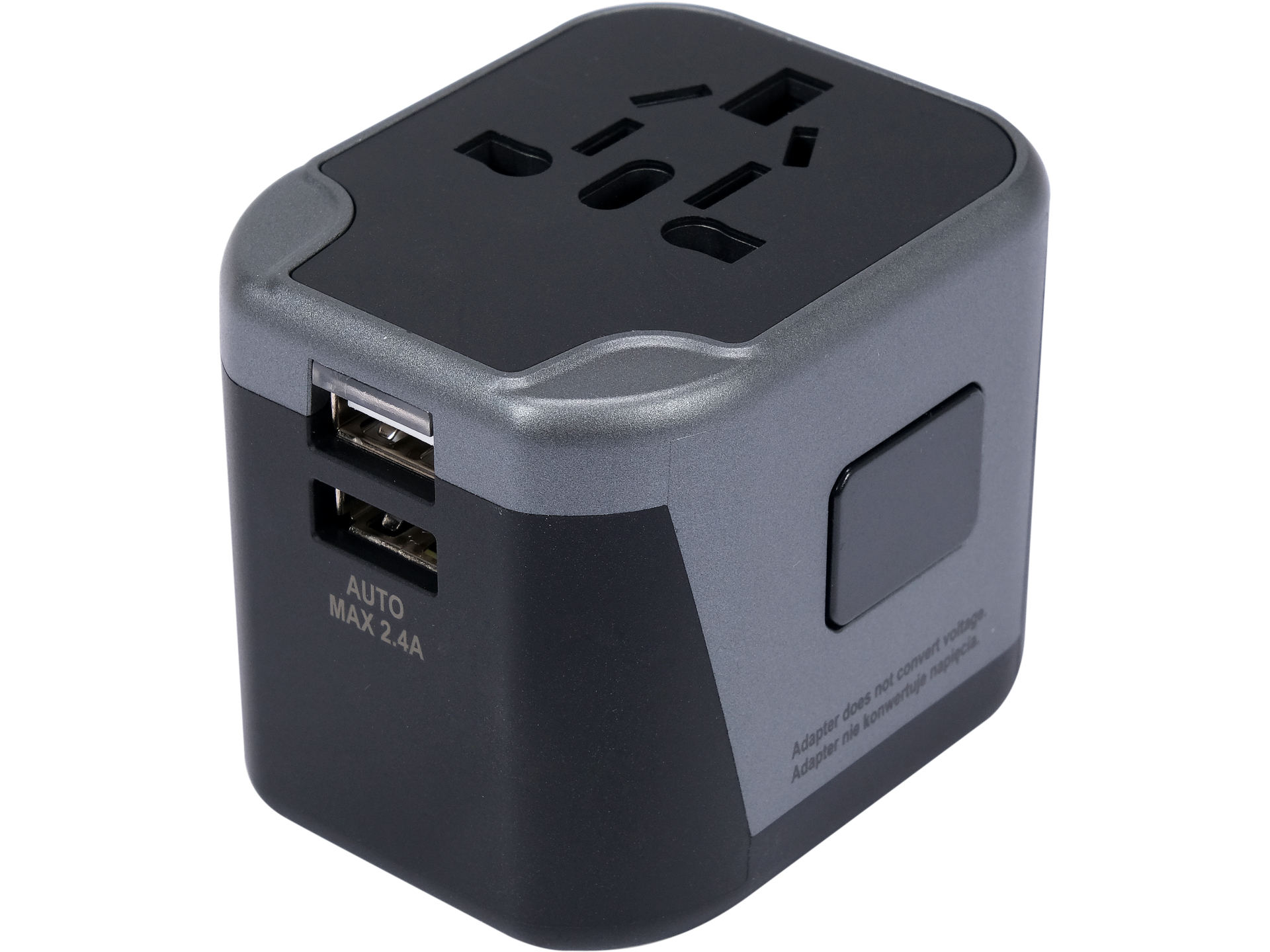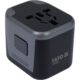 Adaptor universal de călătorie complet cu 2 porturi USB integrate, compatibil cu prizelete din peste 100 de țări. Acceptă prize tip I (AU, CN), G (UK), A (USA, JP) și C (UE), ideal pentru călătorii internaționale. Tensiune 110-240 V a.c., protecție pentru copii și grad de protecție IP20. Putere maximă 1840 W cu ieșire USB de 12 W total la 5 V d.c., suportând încărcarea simultană a două dispozitive. Material PC durabil, design compact, masa 120 g.