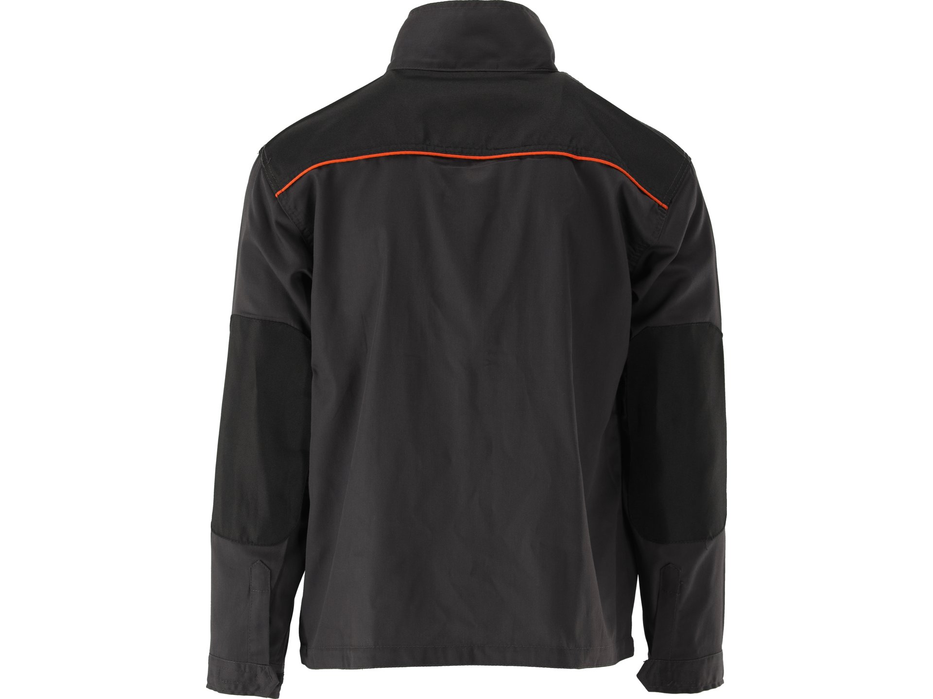 Bluză de lucru din material mix poliester-bumbac (65/35) cu design modern și funcțional. Culoare negru cu detalii portocalii pentru o imagine profesională distinctivă. Închidere cu fermoar pentru ușurință în purtare, 8 buzunare externe pentru stocarea uneltelor și echipamentelor. Orificii de ventilație strategice asigură confort și respirabilitate pe parcursul zilei de lucru.