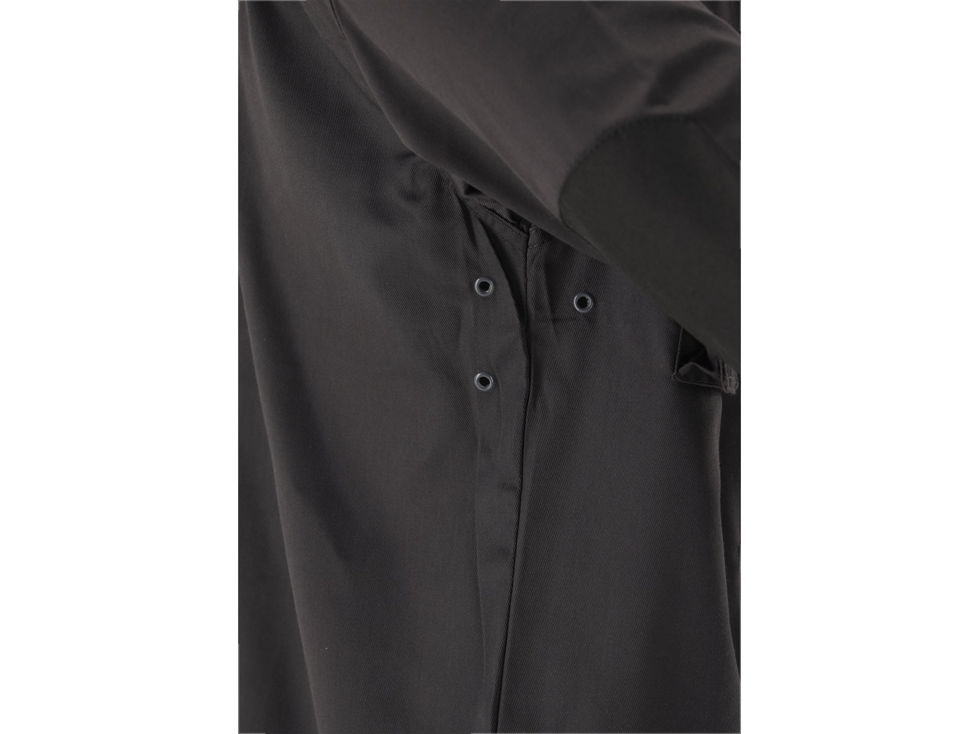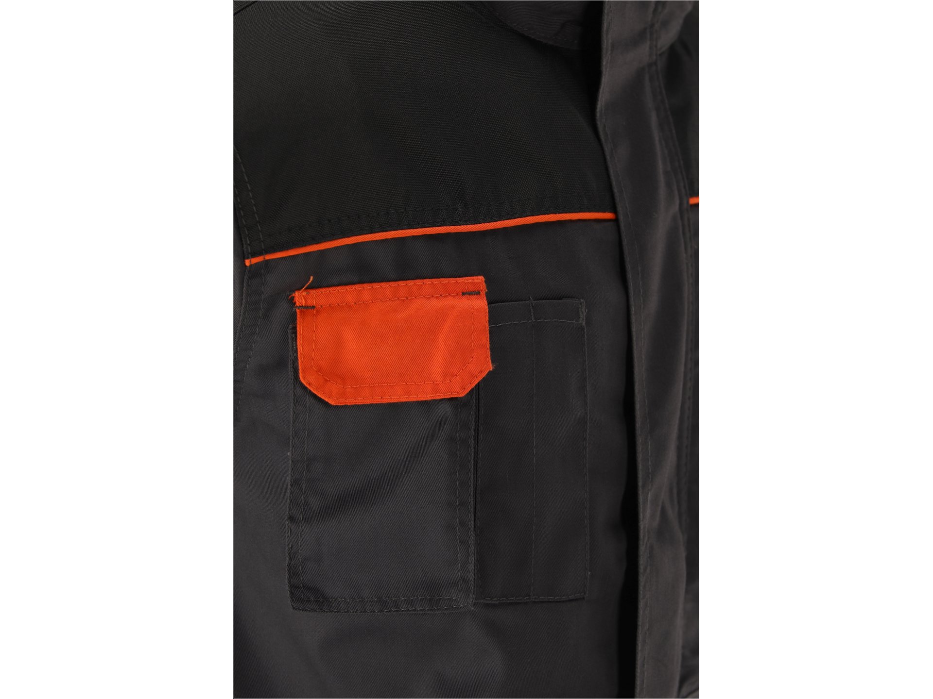 Bluză de lucru neagră cu detalii portocalii, 8 buzunare și ventilație, confecționată din mix poliester-bumbac pentru confort și durabilitate.