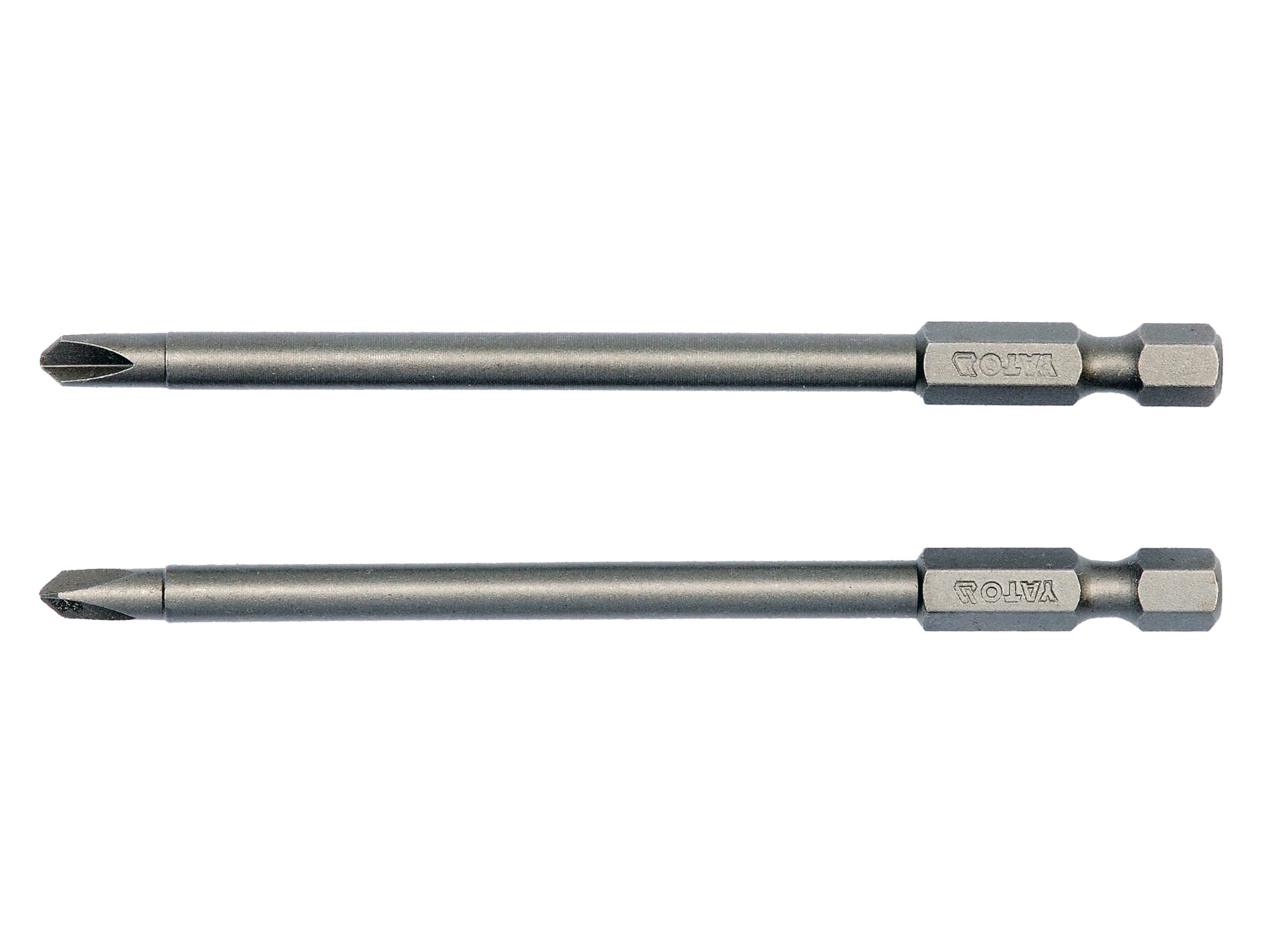 Set de 2 biți Tri-Wing de 100 mm pentru șurubelnițe, din oțel S2 dur, potrivite pentru șuruburi în dimensiunile 1 și 3 mm.