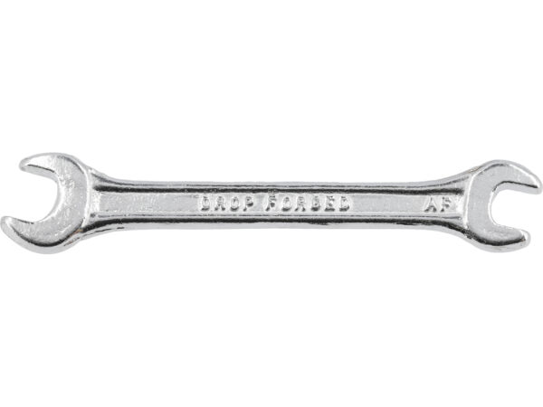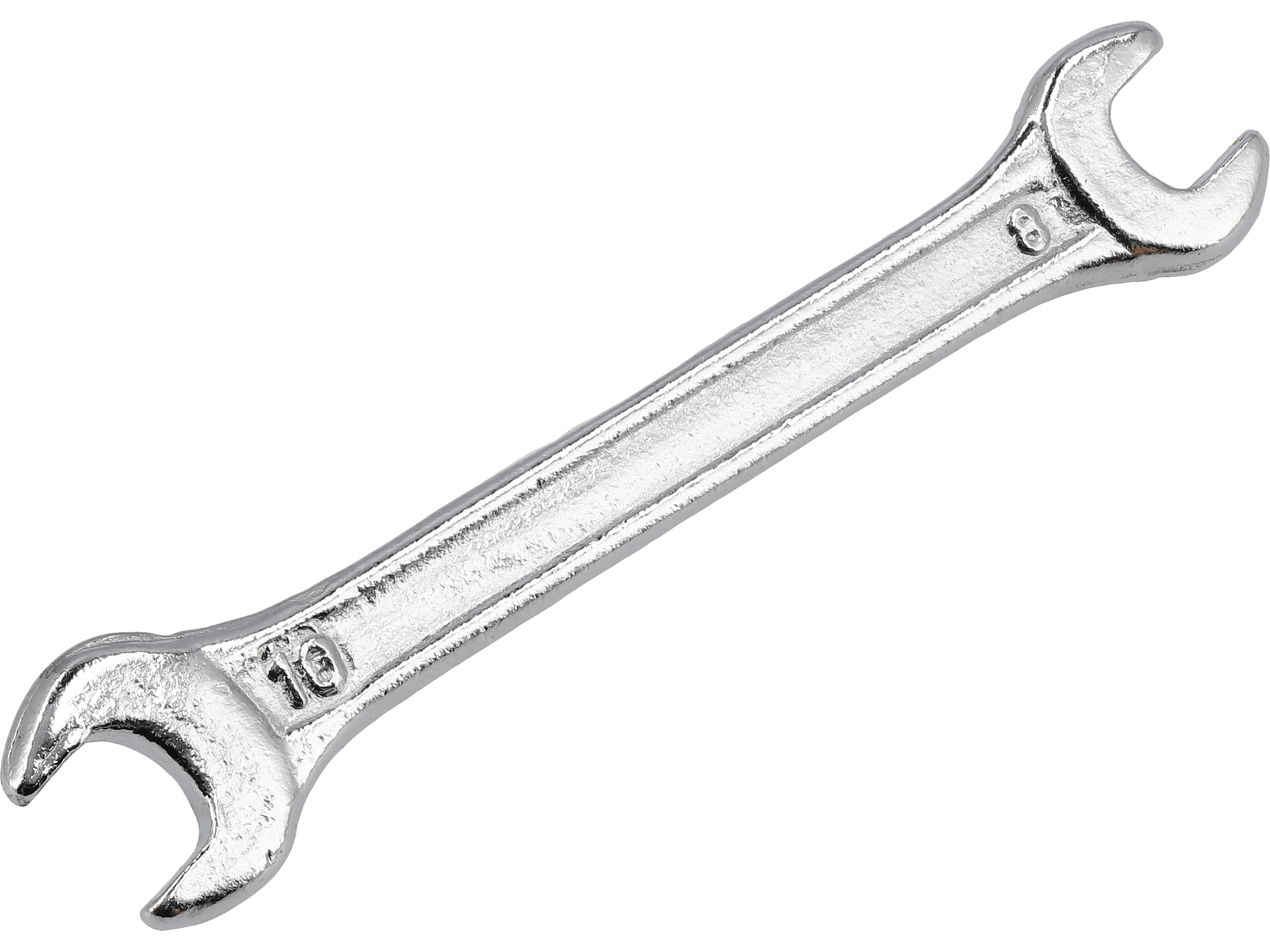 Cheie fixă cu dimensiuni 8x10mm, fabricată din oțel carbon de calitate și acoperire cromată pentru protecție antipcoroziune. Suprafață lustruită pe patul deschis, unghi de cap de 15°, asigură accesibilitate optimă în spații restrânse. Instrument esențial pentru orice echipă de mecanică.