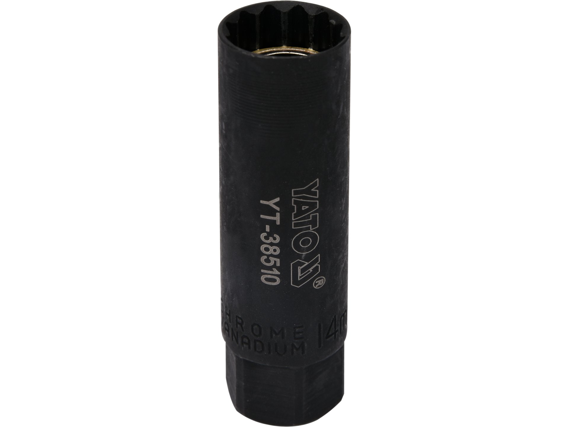 Cheie magnetică pentru bujii, conexiune 3/8″, dimensiune cap 14 mm. Construct din oțel CrV cu finisaj cromat și înnegrire pentru durabilitate maximă. Magnetul integrat ține bujia în poziție sigură, eliminând riscul căderii. Cap dodecagonal cu pereți subțiri asigură presa ideală fără deteriorarea componentelor.