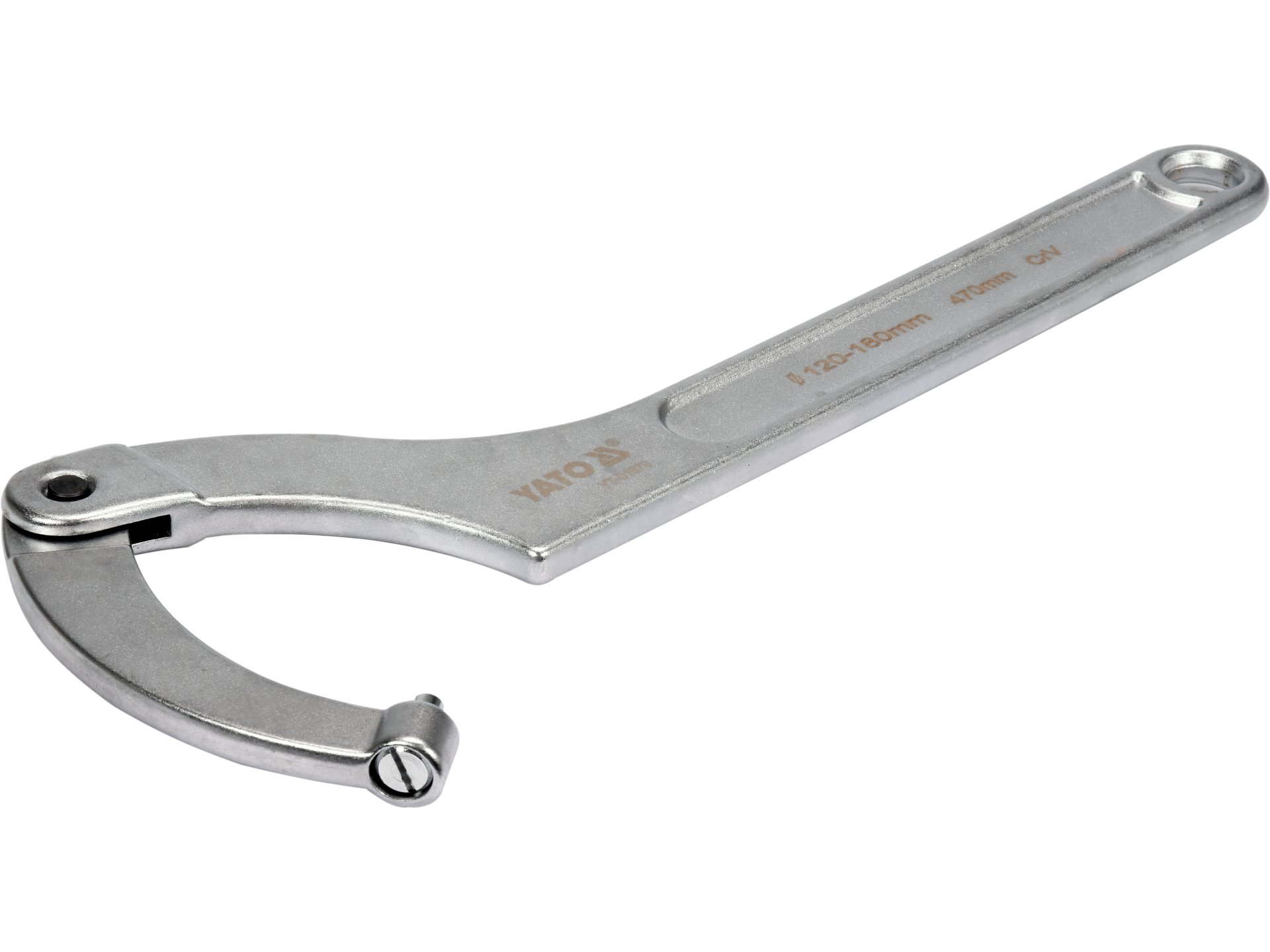 Cheie universală cu cârlig și știft pentru reglajul flanșelor, inelelor și rulmenților, cu deschidere ajustabilă 120-180 mm.