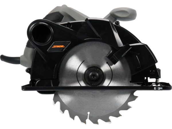Ferăstrău circular de mână cu motor puternic de 1200W, ideal pentru tăieturi precise în lemn și materiale similare. Diametrul discului de 160mm permite o adâncime de tăiere de până la 52mm (90°) sau 37mm (45°), cu posibilitatea reglării unghiului între 0-45°. Echipat cu 18 dinți pentru performanță optimă și funcționare stabilă la 4800 rot/min.