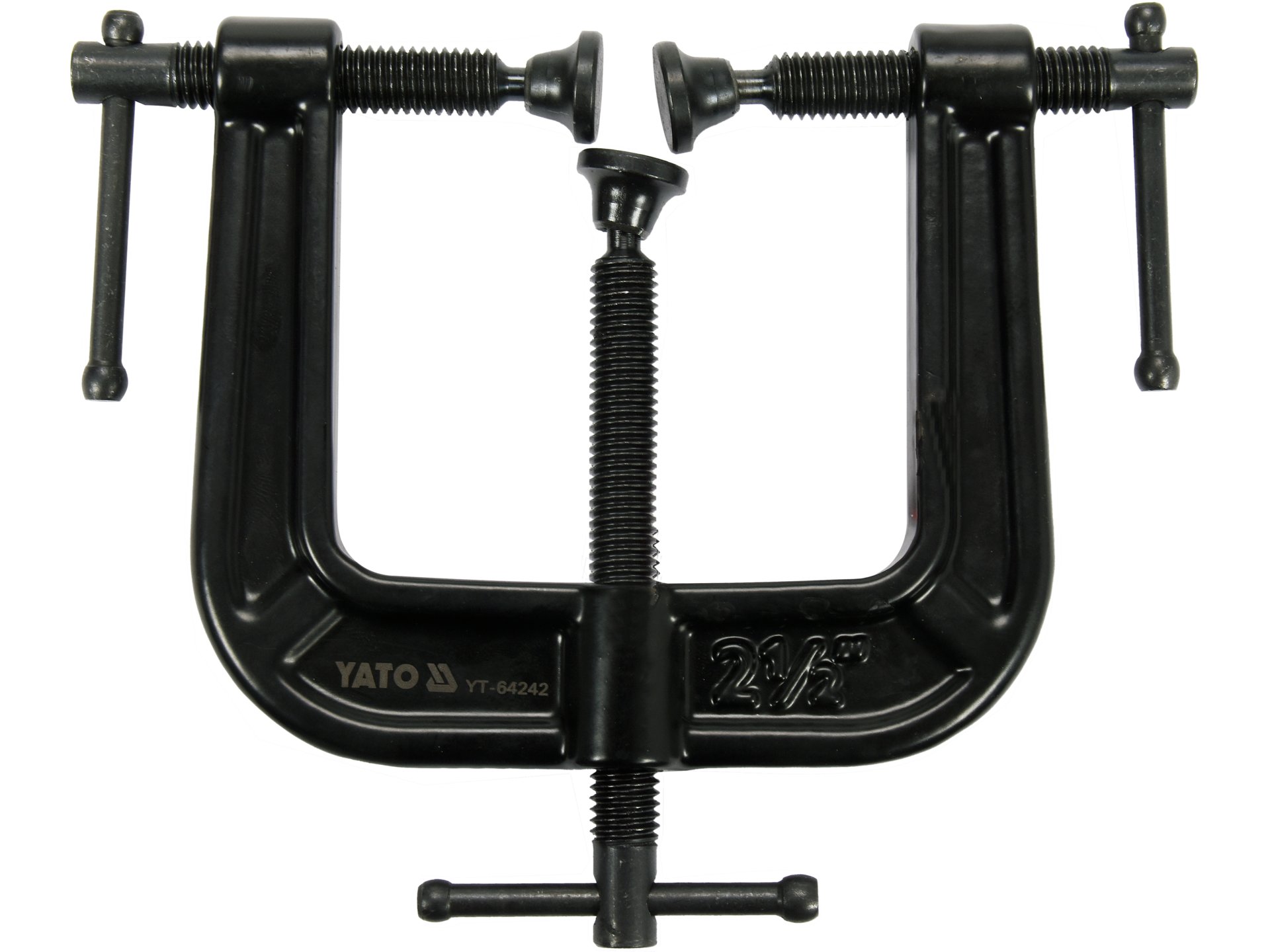Clemă tip C din fontă cu finisaj cu pulbere, dimensiuni 62×62 mm și capacitate maximă de strângere 62 mm. Dispune de șurub de fixare din oțel cu finisaj înnegrit pentru durabilitate și protecție anticoroziune. Construcție robustă și stabilă, potrivită pentru prinderea și fixarea materialelor în ateliere, șantiere și operații de mecanică.