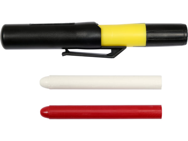 Creion tehnic automat cu mină de ceară, lungime 150 mm, din material polimer calitativ. Dispozitiv cu mecanism precis și inserție de 10 mm diametru, lungime 85 mm. Echipat cu 1 cartus principal și 2 cartușe suplimentare. Culori: roșu și alb (x2). Ideal pentru marcarea și trasare pe lemn, materiale de construcție, piatră, metal și plastic.