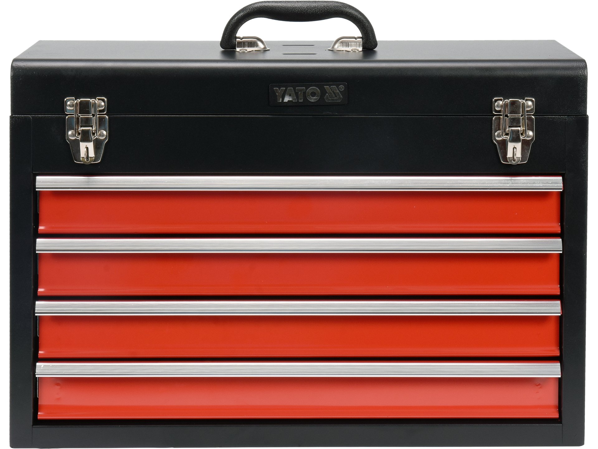 Cutie de stocare metalică cu 4 sertare, ideală pentru organizarea și transportul sculelor profesionale, echipată cu iluminare integrată.