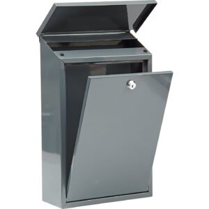 Cutie poștală din plăcuță metalică cu finisaj zincat galvanizat, dimensiuni standard 360x260x80 mm. Construcție robustă cu grosimea peretelui de 0.6 mm și lățimea de admisie a scrisorilor de 220 mm. Dotată cu sistem de blocare prin instrument și furnizată cu 2 chei de acces. Culoarea gri (grafit) se integrează discret în orice peisaj. Masa de 1.73 kg asigură stabilitate.