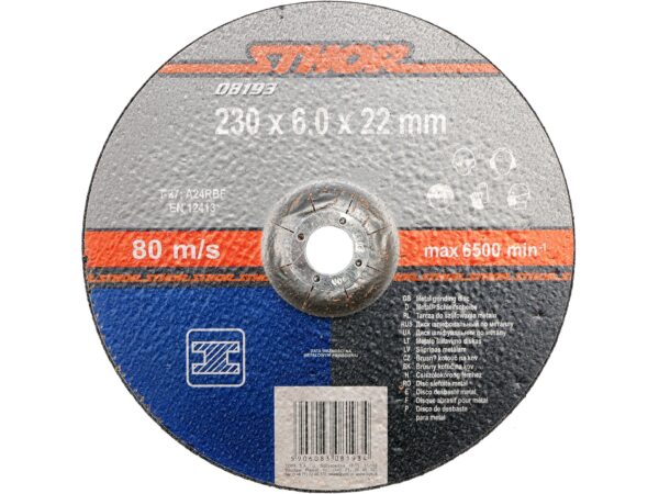 Disc de șlefuit convex de 230mm cu grosime 6mm, ideal pentru sfâșierea și finisarea metalelor la viteze de funcționare ridicate. Viteză liniară maximă de 80 m/s și hasta de 6500 rpm asigură productivitate optimă și finisaj de calitate.