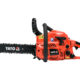 Drujbă cu motor pe benzină fără plumb, putere de 1.3 kW (1.7 CP) și capacitate cilindră de 37.2 cm³. Lama de 14 inci cu lanț 3/8.050×52 asigură tăiuri curate și eficiente. Rezervor combustibil de 280 cm³ și ulei de 170 cm³ oferă autonomie suficientă pentru lucrări prelungite. Turatia maximă de 8000 rpm cu turație de ralanti reglabilă (2700-3400 rpm) garantează performanță optimă. Ideală pentru tăierea lemnului în grădini și lucrări de construcție.