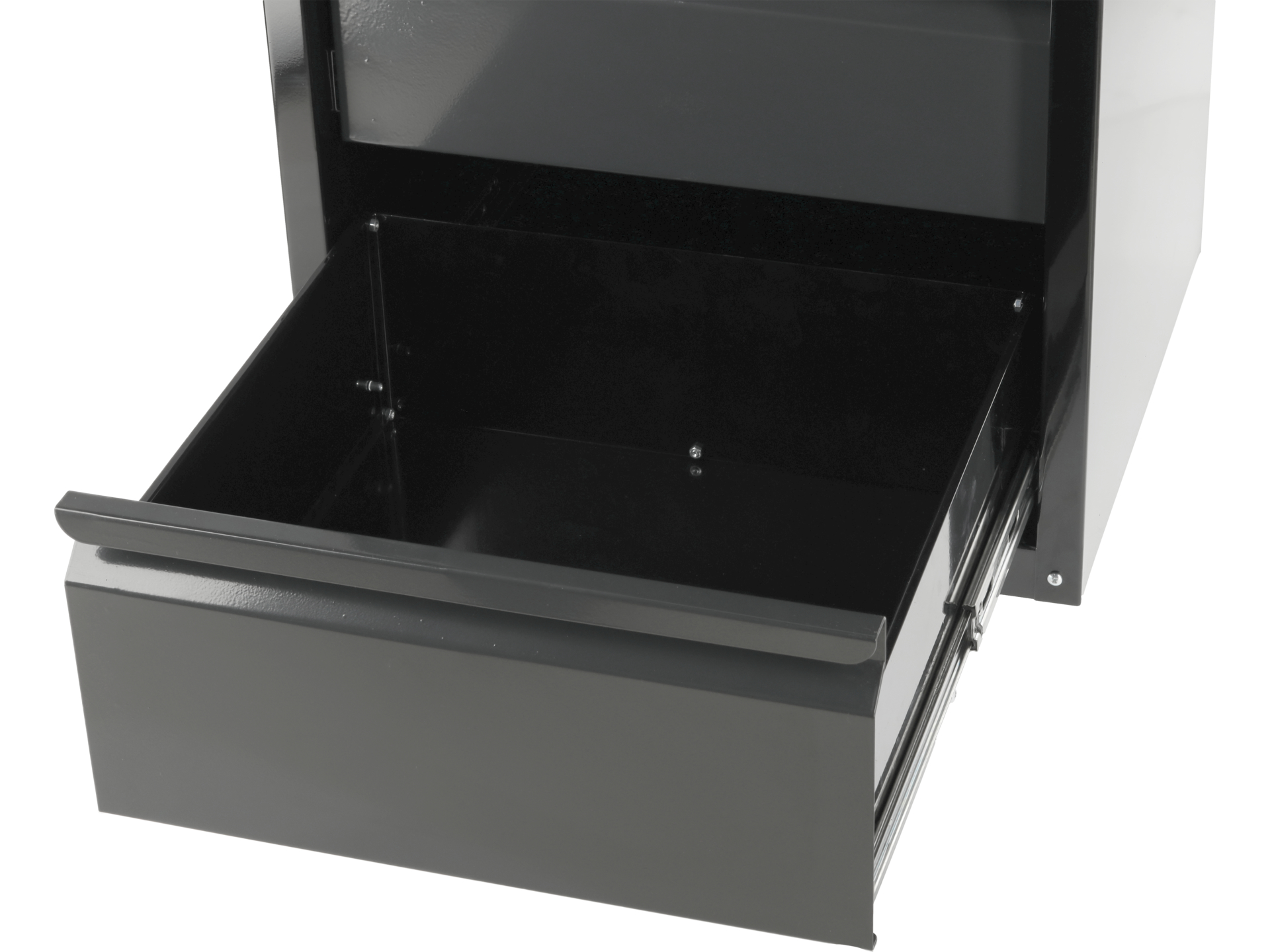 Mobilier de serviciu robust din plăcuță metalică cu grosime 0,8 mm și finisaj pulverizat. Dispune de 3 sertare cu role cu bile pentru deschidere ușoară și fluență. Dimensiuni compacte (775x525x485 mm) se adaptează oricărui atelier, cu capacitate de sarcină maxima de 20 kg pe sertare. Greutate totala 25,5 kg asigură stabilitate și durabilitate.