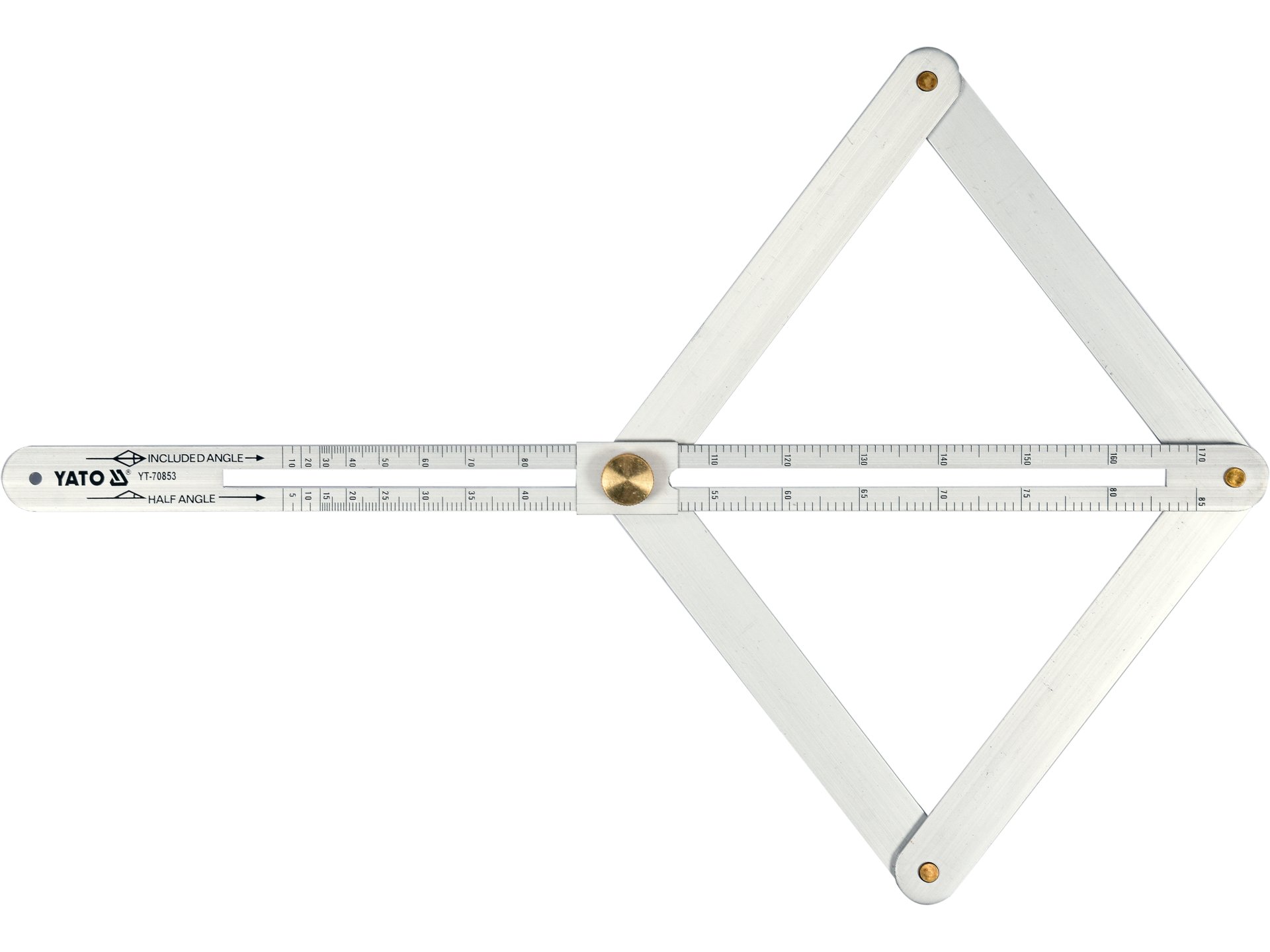 Echer reglabil din aluminiu pentru măsurări unghiulare precise, cu scară metrică și brațe lungi de 170 mm.