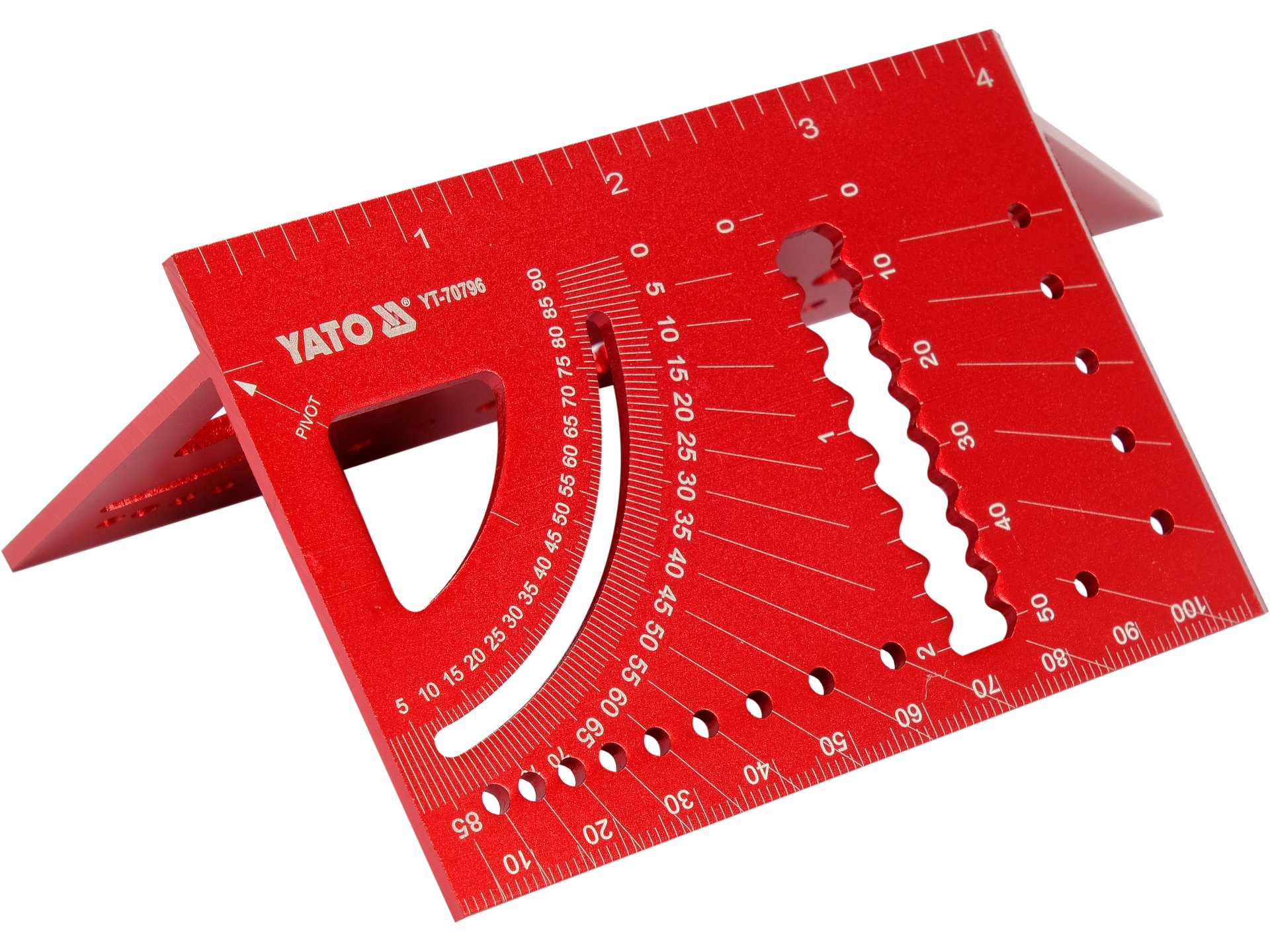 Echer universal 3D din aluminiu cu scară metrică și raportor dublu pentru măsurări precise la 45° și 90°.