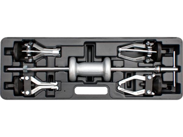 Set profesional de extractoare pentru rulmenți și bucșe, conținând 4 extractoare cu 2 și 3 brațe (extern și intern), mâner și ciocan. Fabricate din oțel carbon #45 de înaltă calitate, piesele asigură durabilitate și performanță în aplicații industriale exigente. Ideal pentru service-uri auto, ateliere mecanice și lucrări de întreținere, set-ul oferă versatilitate pentru diverse tipuri de extrageri.