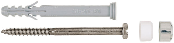 Setul de fixare pentru vase WC fischer S 8 RD 80 include toate elementele necesare pentru fixarea sigură a vaselor WC de sine stătătoare: Două dibluri fischer S 8 cu tijă și guler pronunțat realizate din nylon de înaltă calitate, două șuruburi din alamă pentru lemn 6 x 85 cu cap hexagonal și două capace de acoperire cromat și alb. Setul este potrivit pentru instalarea prin străpungere.