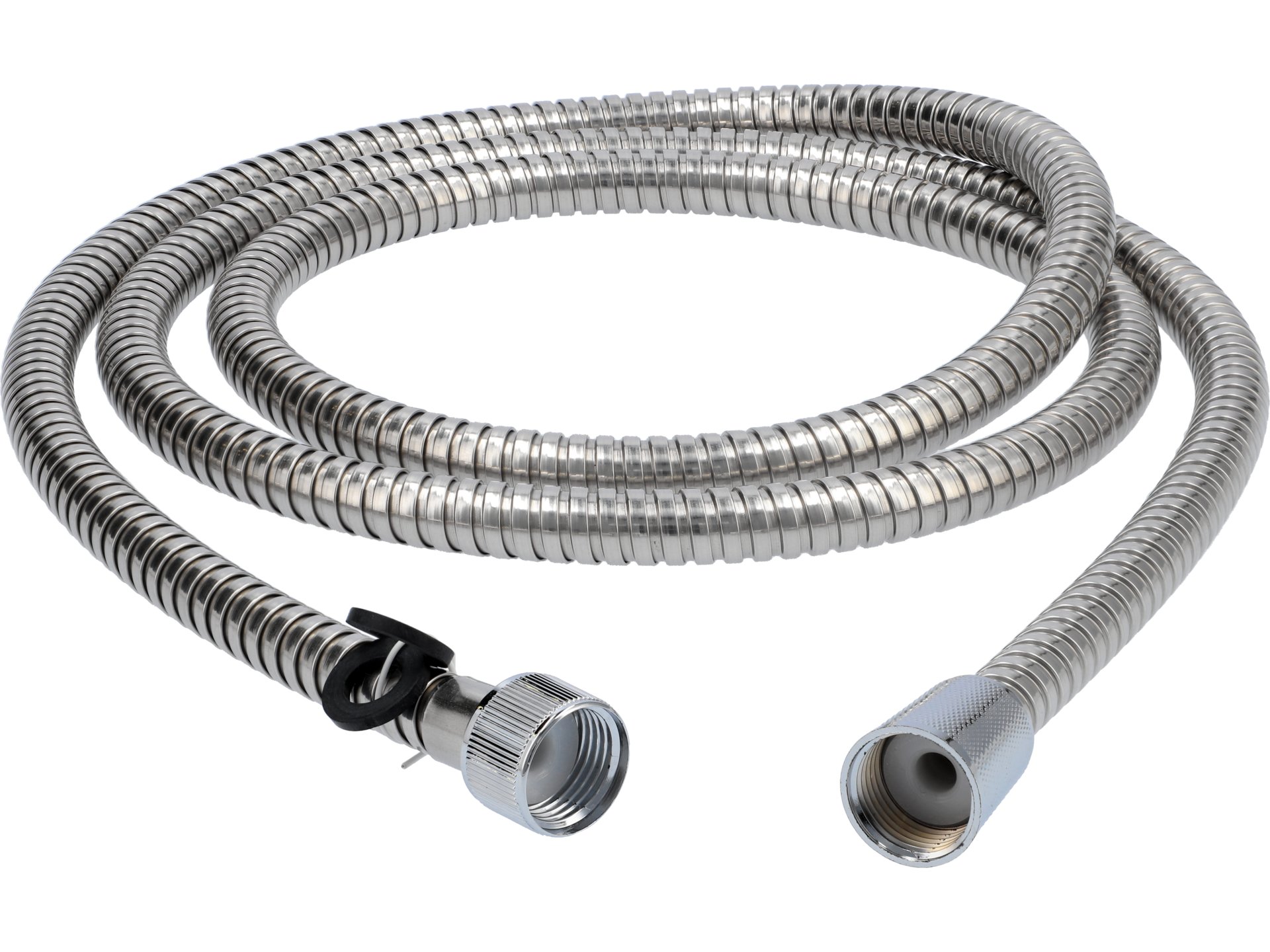 Furtun de duș din oțel inoxidabil și PVC, lungime 2m, cu finisaj cromat lustruit și filet G1/2 standard.