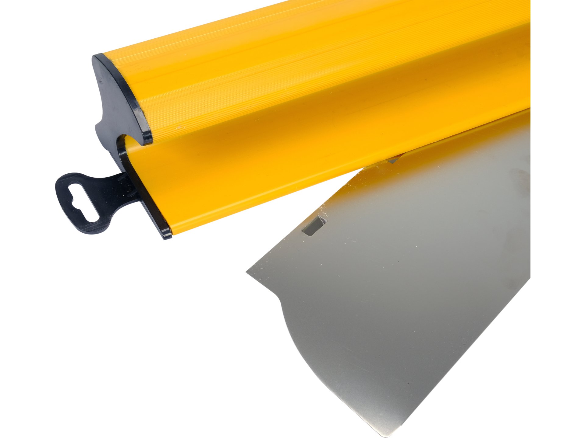 Gletieră lungă de 1200 mm cu lamă din oțel inoxidabil 201, concepută pentru finisarea precisă a suprafețelor mari. Flexibilitatea larbetei permite o distribuție uniformă a materialelor de umplere pe pereți și tavane. Lamă înlocuibilă cu grosime de 0,3 mm și mâner ergonomic din PVC asigură confort și control în aplicații uscate și umede. Grosimea redusă permite nivelare fără marcarea suprafeței.