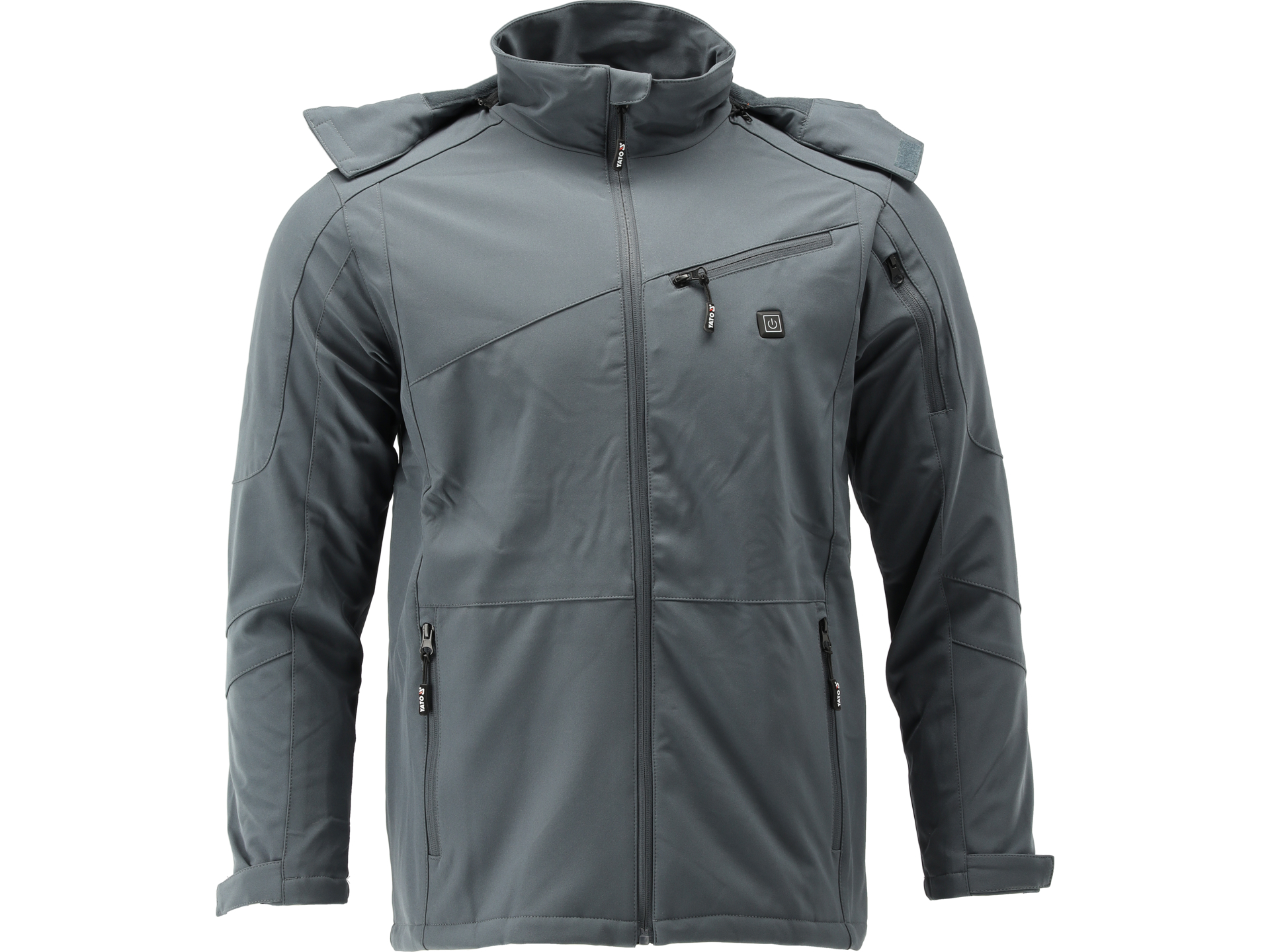 Jachetă softshell XL cu sistem de încălzire integrat, ideală pentru lucrul în medii reci cu protecție și confort superior.