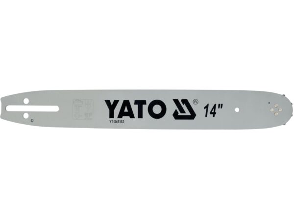 Lamă de ferăstrău cu lanț din oțel 65Mn, lungime 14″ (360 mm), cu 52 de celule și pas 3/8″ (9.52 mm). Dispune de sistem de ungere automată a lanțului pentru performanță optimă și durată de viață prelungită. Montare tip U, grosime ghidaj 0.322″ (8.2 mm) și 4 nituri de fixare asigură stabilitate. Echipată cu rulment cu role pentru operare liniștită și eficientă.
