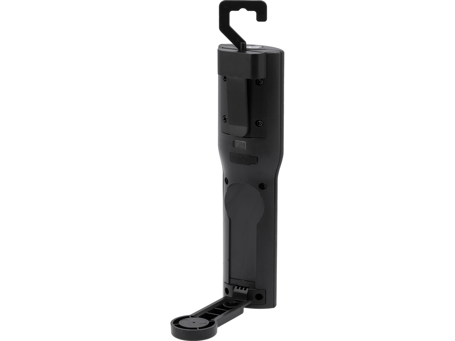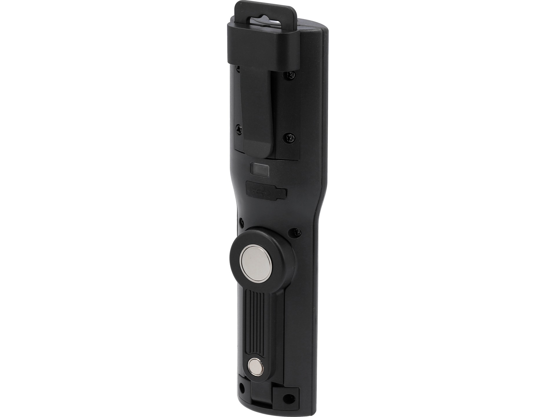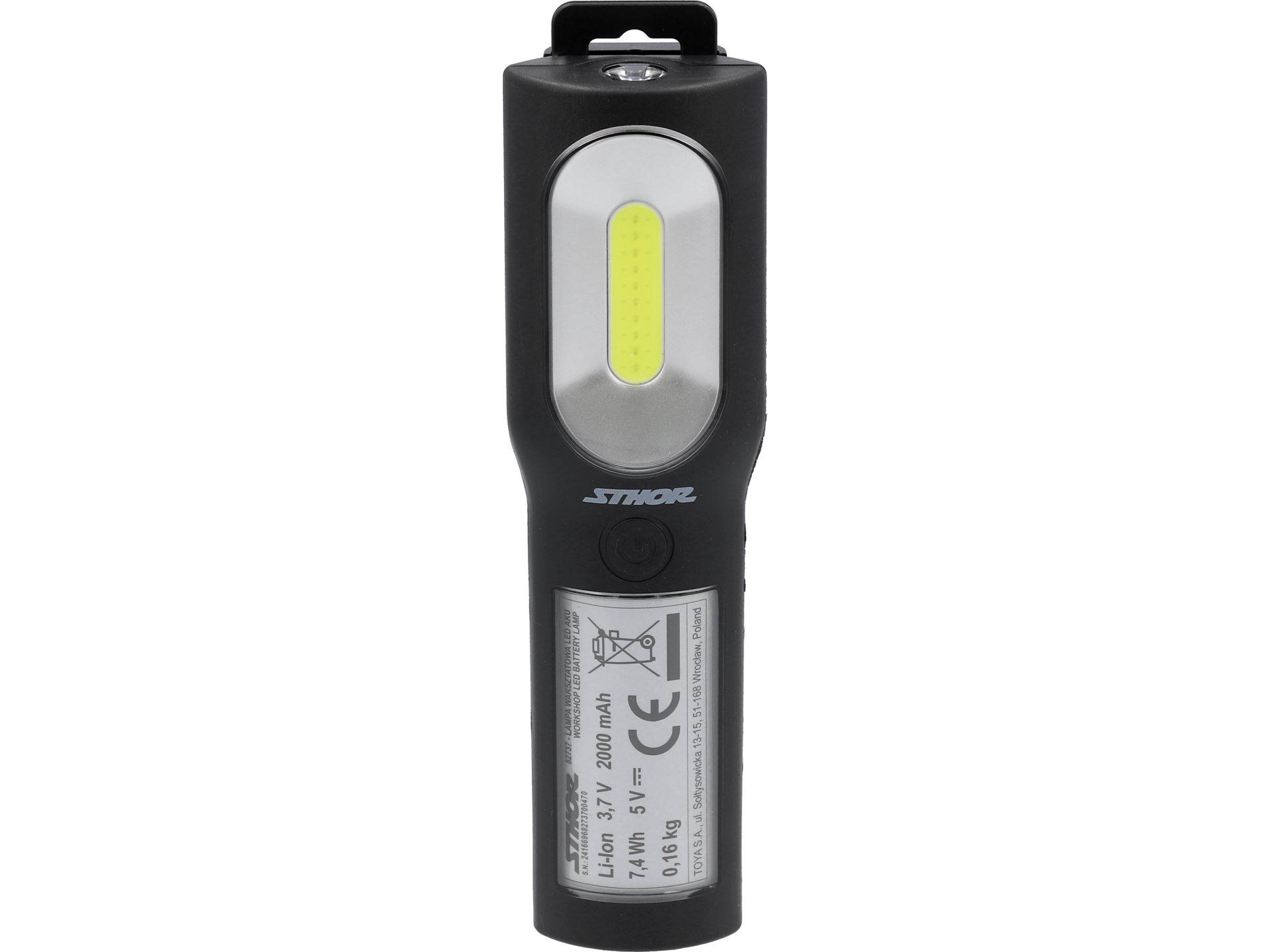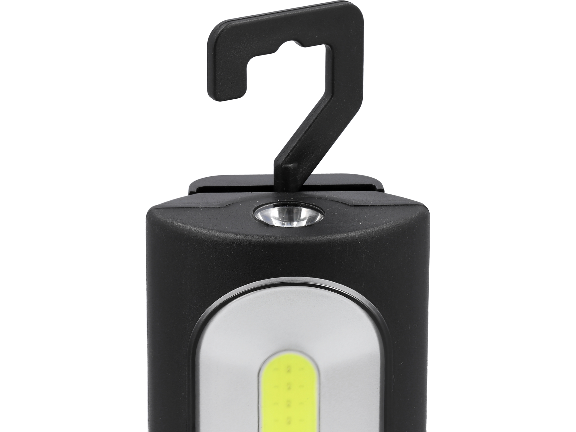 Lampă de atelier LED COB și POWER LED cu putere de 3+3 W și flux luminos de până la 350 lm. Oferă 4 moduri de iluminare: COB 100%, COB 30%, POWER LED și lumină roșie intermitentă de avertizare. Temperatura de culoare neutră 6000-7000 K și indice CRI ridicat asigură vizibilitate excelentă în spații de lucru. Alimentată de baterie Li-Ion 2000 mAh cu încărcare USB-C, cu cârlig pentru fixare la diverse suprafețe.