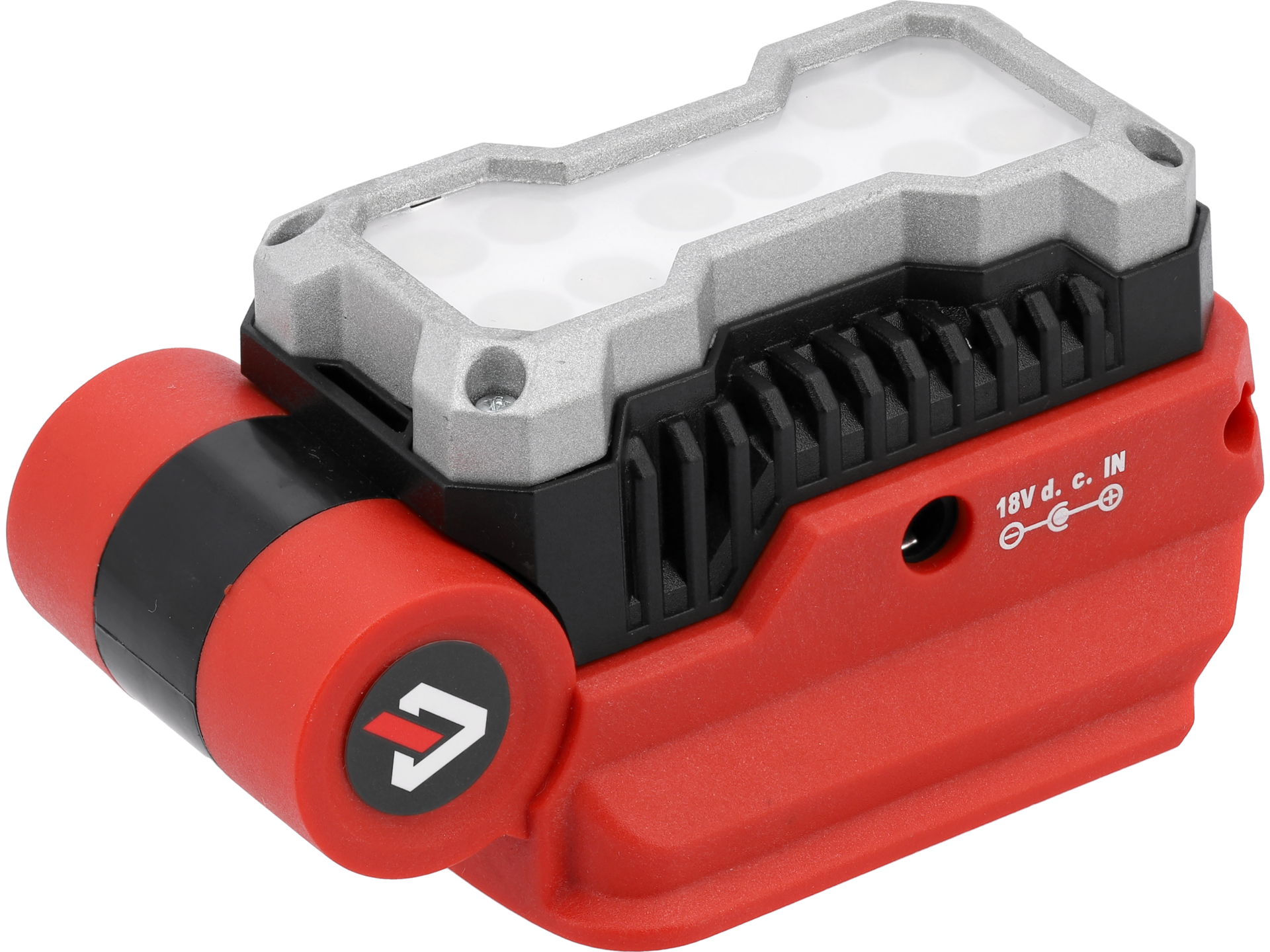 Lampă de lucru LED compactă 18V cu 500 lm, încărcabilă prin USB, ideal pentru iluminare flexibilă pe șantier sau în atelier.