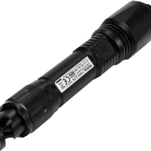 Lanternă LED portabilă cu acumulator Li-Po integrat de 1500mAh, combinând funcții de lanternă și power bank. Trei moduri de iluminare: mod înalt (500lm, 55m rază), mod scăzut (200lm, 33m) și lanternă (60lm, 30m rază) cu durate de lucru de 2-9 ore. Construcție din metal ușor, rezistent la apă, echipată cu doi magneți în bază și clip, cârlig de suspensie și comutator. Încărcător USB inclus, reîncărcare în 3 ore.