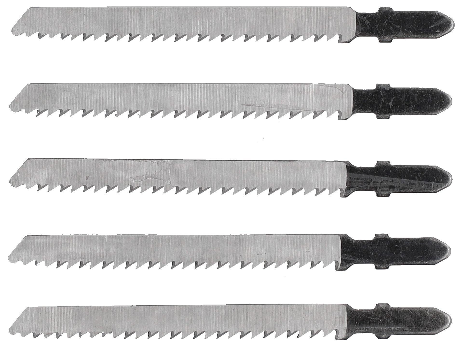 5 pânze fierăstrău pendular pentru tăierea parchetului laminat și PAL, cu dinți ascuți și suport tip T.