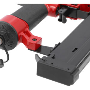 Pistol pneumatic robust cu capacitate de 225 cuie, destinat fixării rapide și precise în aplicații de tapiţerie, dulgherie și finisare. Funcționează la presiune de 0.4-0.8 MPa, cu sistem de încărcare laterală și unghi de conectare de 15°. Corp din metal ușor și mânere din cauciuc asigură control și confort. Echipat cu capac de praf și sisteme de siguranță integrate.