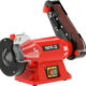 Polizor electric performant cu putere de 520W și turație de 2980 rot/min, ideal pentru șlefuire și finisare în ateliere profesionale. Dispune de roți de șlefuit Ø150x25mm și bandă abrazivă 686x50mm pentru o zonă de lucru generoasă. Tensiune 230V, clasa de izolare I și grad de protecție IPX0. Setul include polizorul și 20 de benzi abrazive asortate (P80, P120) pentru diferite aplicații. Masa de 14kg asigură stabilitate superioară în funcționare.