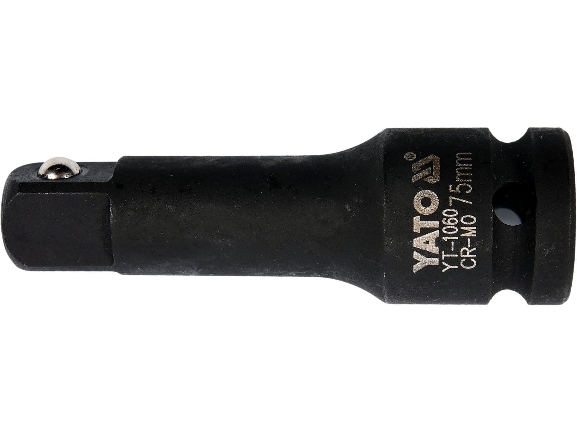 Prelungitor de impact din oțel CrMo SCM-440, cu finisaj fosfatat pentru protecție maximă împotriva coroziunii. Dimensiune suport 1/2″ (12.7 mm), lungime 75 mm, rază tijă 17.5 mm și diametru exterior capac 25 mm. Ideal pentru aplicații cu impact în ateliere profesionale.