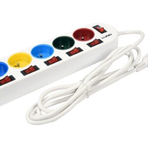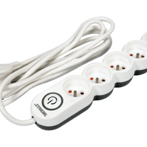 Prelungitor de calitate cu 4 prize și împământare, ideal pentru birou sau atelier, cu protecție copil și comutator.
