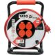 Prelungitor pe tambur din PVC roșu, ideal pentru lucrări de lungă durată. Lungime 50 m cu secțiune de 3×2.5 mm², suportă 16 A la 230 V. Dispune de 4 prize cu împământare (tip E și F) și protecție pentru copii. Sarcina maximă: 1200 W (cablu bobinat) și 3600 W (complet derulat). Grad de protecție IP44 și protecție la supraîncălzire pentru siguranță sporită. Urechi de transport și stand integrat asigură portabilitate și stabilitate.
