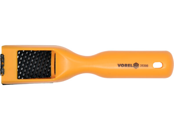 Rindea pentru rigips și gips carton, lățime de lucru 60 mm, lungime 40 mm. Piesă de lucru din oțel 65Mn, corp din ABS rigid. Profil nivelat cu incizii groase și globale, potrivită pentru plăci de gips carton, lemn, aliaje, oțel, plăci laminate și compozite. Instrument esențial pentru finisări profesionale și șlefuire a suprafețelor.