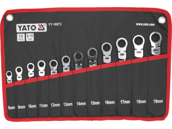 Set de 12 chei combinate flexibile cu clichet, dimensiuni de la 8 la 19 mm, fabricate din oțel CrV durificat. Clichetul cu 72 dinți și capabil AS-DRIVE permite manevrabilitate maximă în spații înguste. Finisajul cromat și întărirea prin inducție asigură rezistență pe termen lung, fiind esențiale pentru orice atelier de mecanică profesional.