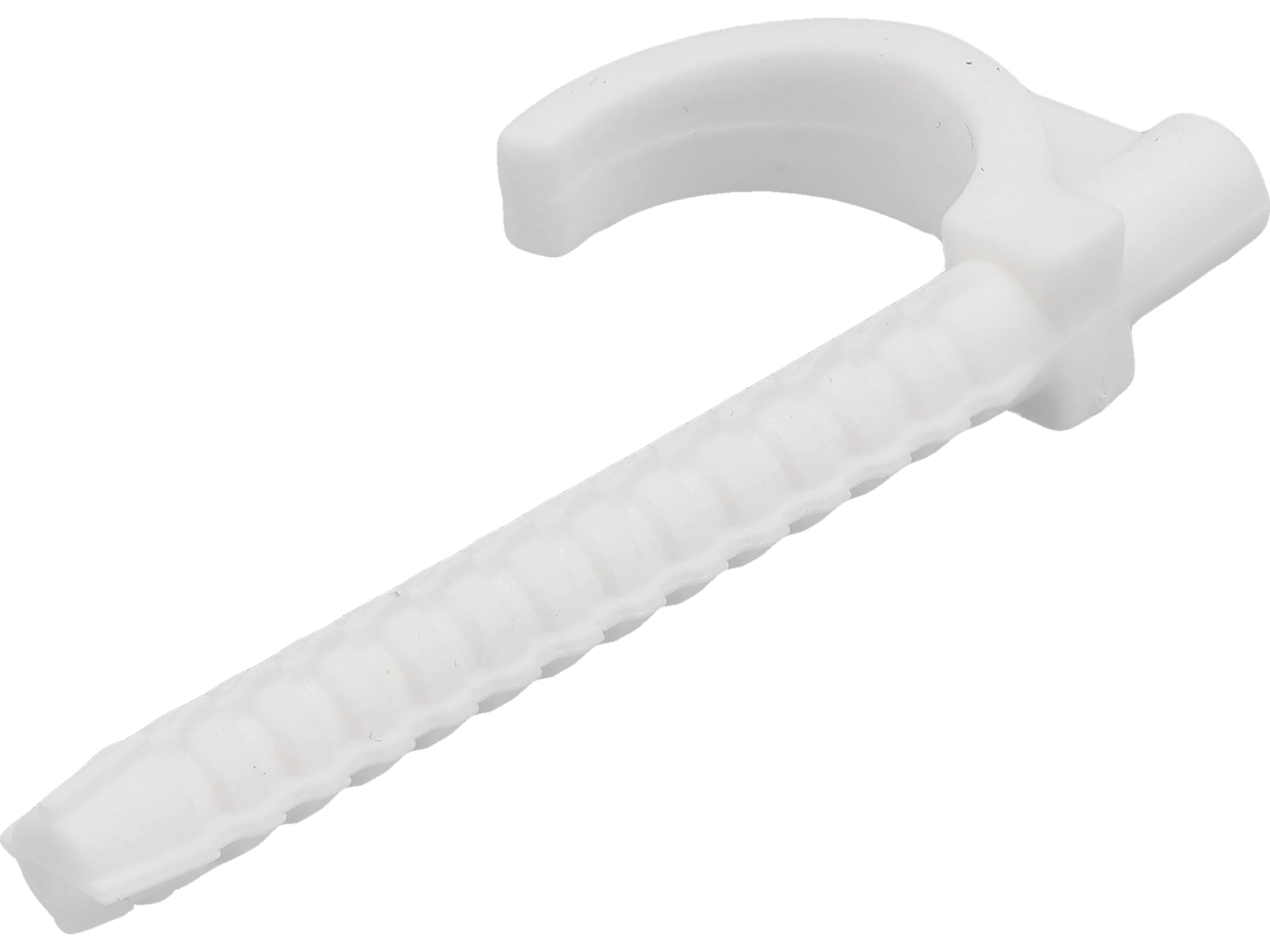 Set de 4 cârlige cu montare rapidă din PEHD alb, compatibile cu țevi de diametru 15-28 mm. Potrivite pentru conducte din cupru, oțel, plastic (PVC, PE, PE-X, PP, PB) și instalații mixte. Temperatura de funcționare între -40 și +110°C. Ideale pentru montarea conductelor de apă, gaze, pneumatice și instalații electrice, atât pentru interior cât și pentru exterior.