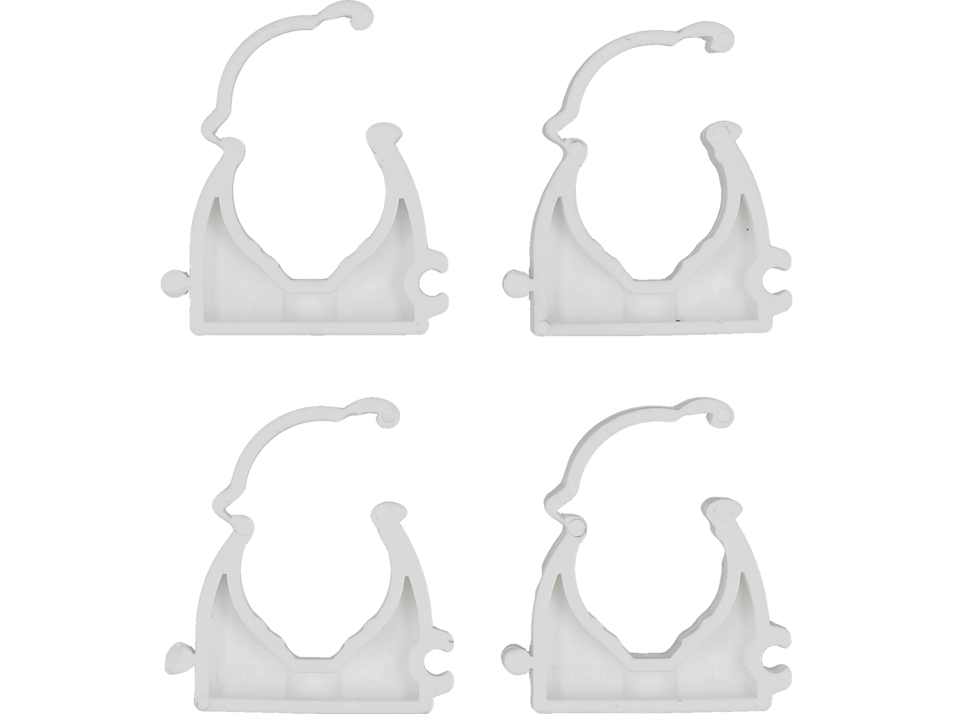 Set 4 cleme blocabile pentru țevi PVC, PE, PE-X, PP, 22 mm, din PEHD, cu interval de temperatură -40 ~ +110°C.