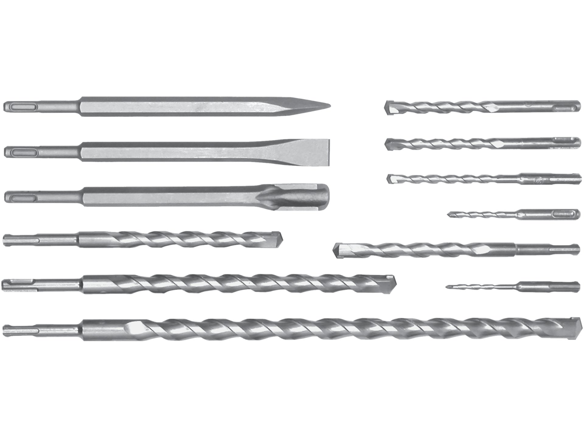 Set complet de 12 burghie și dălți SDS-Plus ideale pentru lucrul în beton și foraje precise.