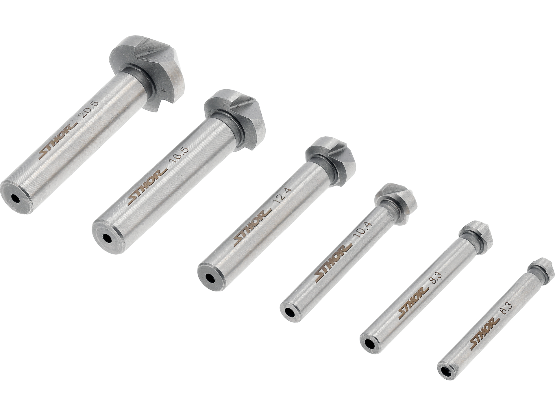 Set complet cu 6 freze din oțel rapid HSS 4241, optim pentru prelucrarea metalelor și aliajelor. Diametrele progresive (6.3, 8.3, 10.4, 12.4, 16.5, 20.5 mm) acoperă majoritate aplicațiilor industriale și de atelie. Unghi de punct 90° și două lame asigură pătrundere rapidă și finisaj de calitate. Suprafață lustruită reduce frecarea și îmbunătățește durata de viață. Stocare organizată în set compact.