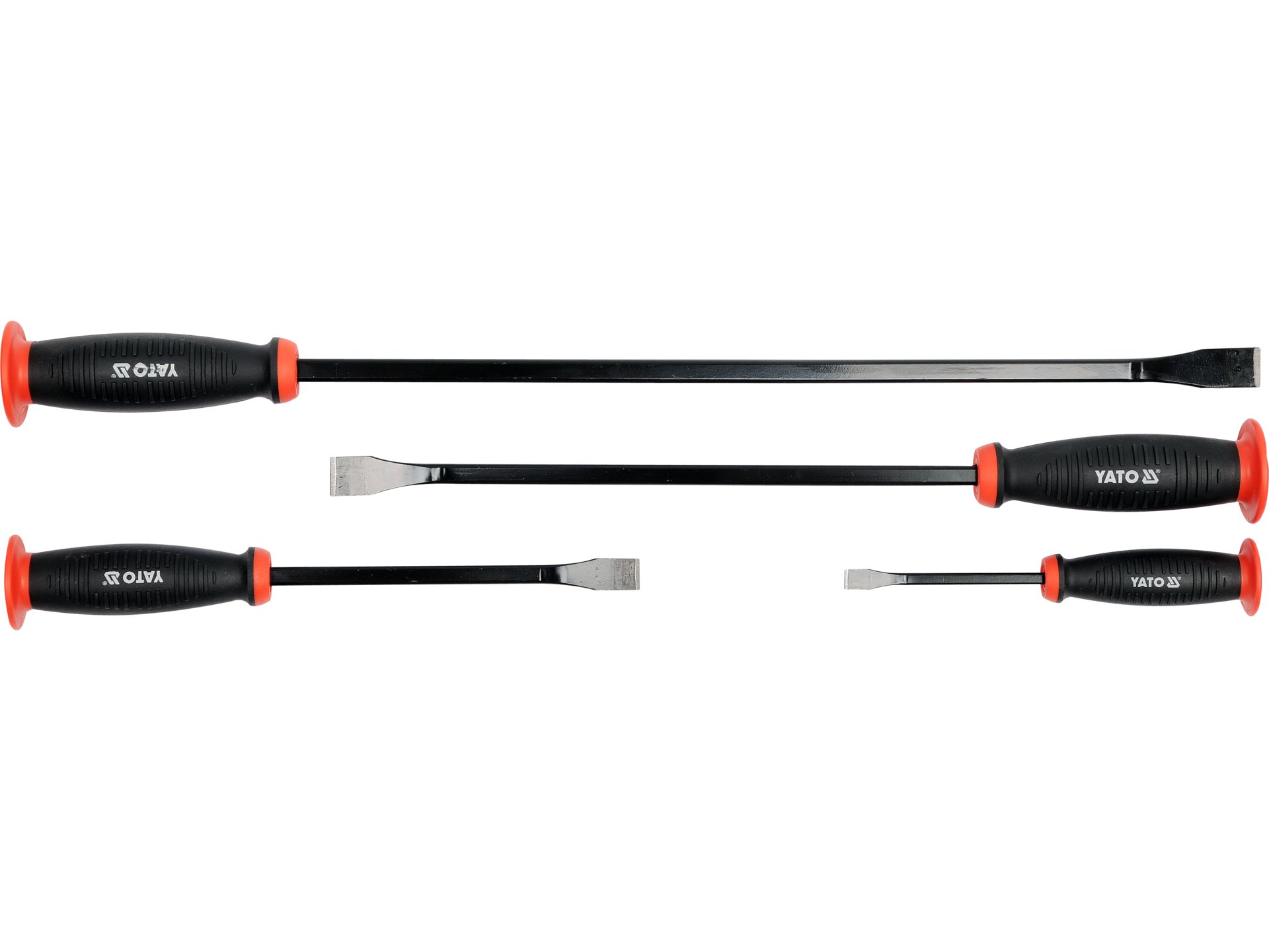 Set complet de 4 leviere din oțel carbon de calitate, cu lungimi variate (198, 304, 456, 608 mm), ideale pentru demontări, curățări și ridicări de piese. Profil hexagonal și finisare epilată asigură durabilitate la impact. Toate pietrele prezintă funcție de bătaie și sunt acoperite cu vopsea protectoare. Masă progresivă (110-745 g) permite selecția piesei potrivite pentru fiecare aplicație.