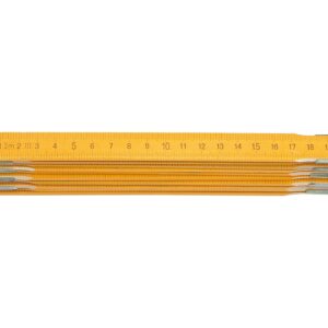 Grosime: 2.4 mmMetru pliabil de cea mai buna calitateLemn de fag atent selectat pentru duritate si rezistenta maxima la intemperii, chiar si in cele mai aspre conditii.Imbinari ascunse pentru o mai buna vizibilitate a gradatiilorArticulatii interne pentru scalare continua, calite, rezistente la uzura.Lac de protectie foarte rezistent, antistatic si stabil la umiditateImbinari robuste din otel de arc de calitate superioara, acoperite cu rasina epoxidica pentru o protectie optima impotriva coroziuniiScara metrica interna pe ambele parti pentru masurarea directa pe suprafete