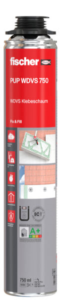 Spuma adezivă cu pistol ETICS fischer Premium PUP WDVS 750 dispune de aviz de construcție și este potrivit pentru lipirea panourilor EPS în sistemele compozit de izolare termică. Rețeta specială garantează rezistența ridicată la tracțiune a aderenței. Grație randamentului ridicat spuma este deosebit de eficientă din punct de vedere al costului. În plus, spuma adezivă poate fi folosită pentru lipirea panourilor de izolare în zona perimetrală, pentru izolarea pereților interiori și pentru izolarea tavanelor din pivnițe. Prin nivelul foarte scăzut al expansiunii ulterioare se evită formarea cavităților și se garantează o izolare de durată. Pachetul include mănușile de protecție pentru utilizatorii finali.