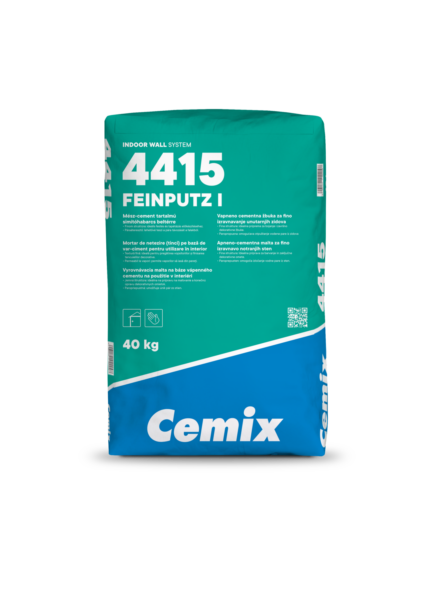 CEMIX 4415 este un tinci de finisaj cu structură fină, pe bază de var-ciment, destinat utilizării în interior. Formula sa specială permite pregătirea optimă a suprafețelor pentru aplicarea vopselei, tapetului sau a gletului.