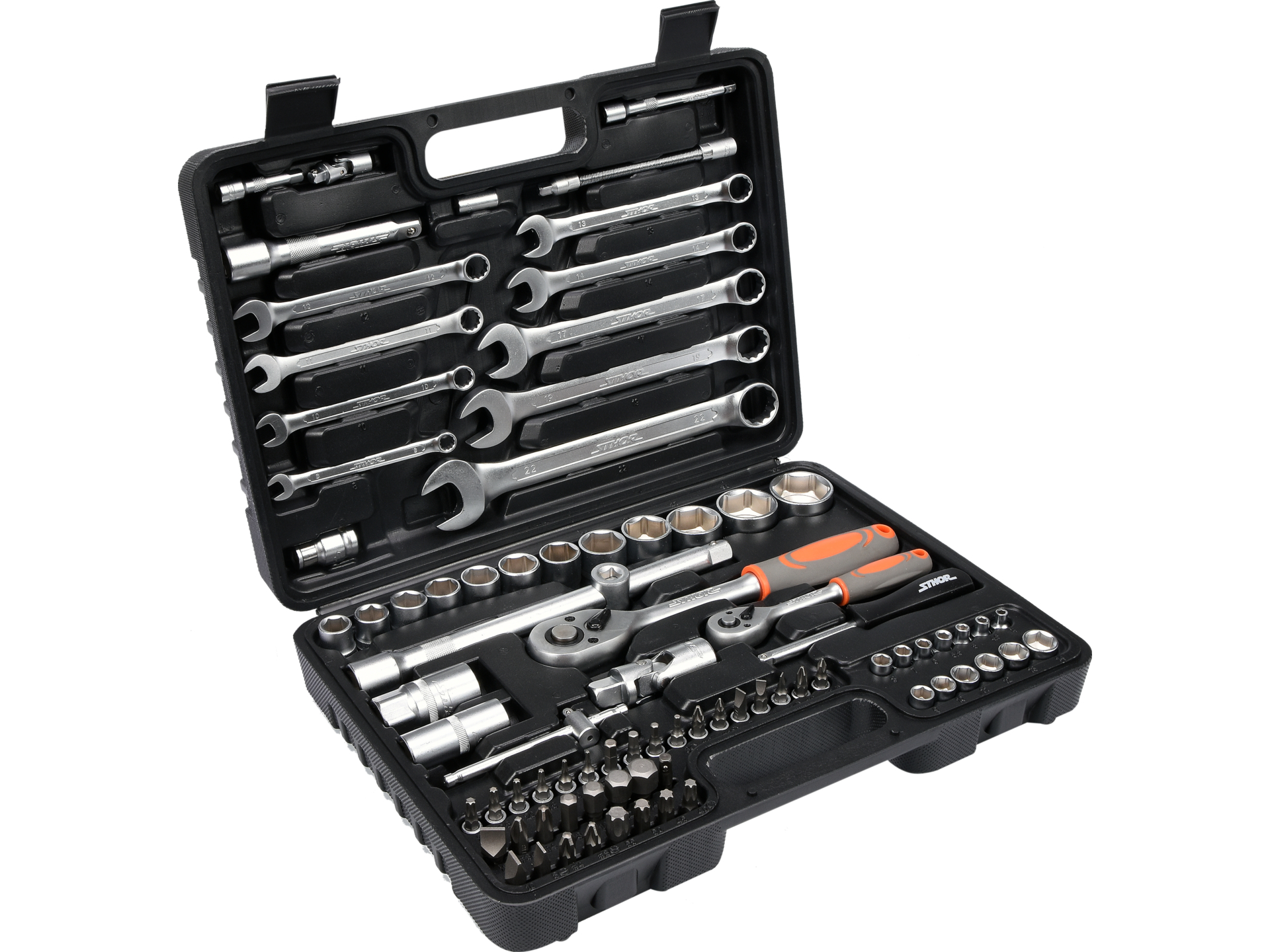 Trusa completă cu 82 piese tubulare, disponibilă în doua dimensiuni de prindere: 1/4″ și 1/2″. Fabricate din oțel carbon de calitate, cu 45 de dinți pentru angajare sigură. Tehnologia AS-DRIVE asigură prindere fără joc. Set versatil adaptat pentru reparații în gospodărie, ateliere auto și lucrări generale. Organizare practică în cutie, ușor de transportat și stocat.