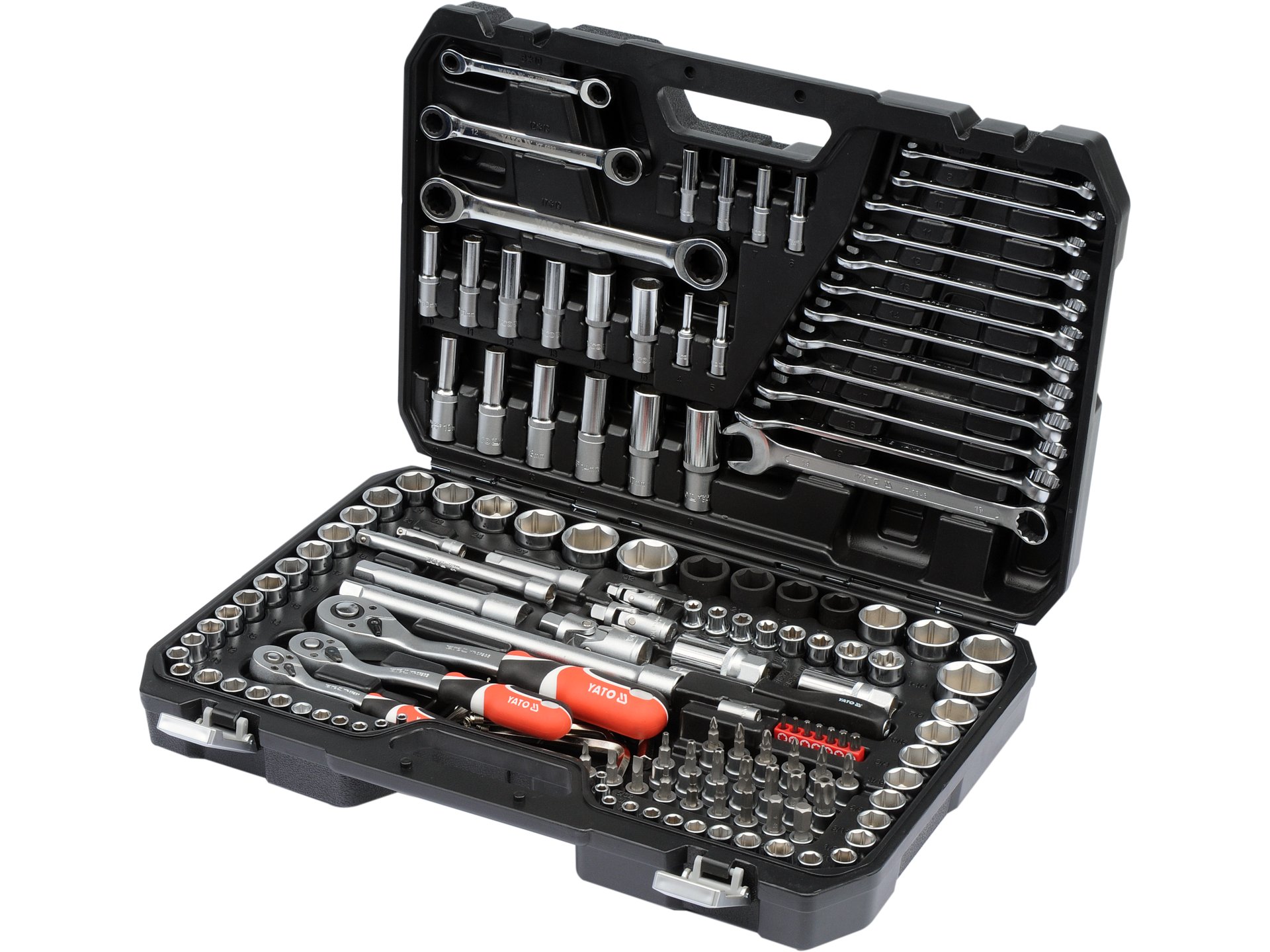 Set complet de 129 piese cu tubulare și accesorii pentru reparații și servicii mecanice. Conține tubulare în trei dimensiuni standard (1/4″, 3/8″ și 1/2″), fabricate din oțel aliat de înaltă calitate (CrV, CrMo și S2). Mecanismul AS-DRIVE cu 72 de dinți asigură angajare precisă și durabilitate. Ideal pentru profesioniști din industria auto, mecanică și agricultură.