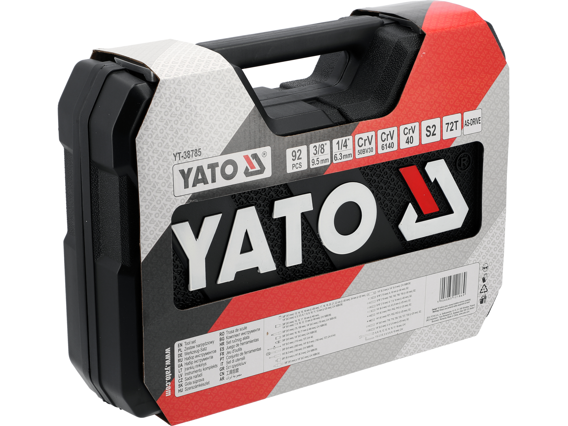 Trușă completă cu 92 piese pentru capete 1/4″ și 3/8″, cu sistem AS-DRIVE și 72 dinți. Fabricată din oțel CrV de înaltă calitate, ideală pentru reparații auto, servicii mecanice, industrie și utilizare pe fermă. Setul cuprinzător oferă versatilitate și productivitate pentru diverse aplicații profesionale și semi-profesionale.