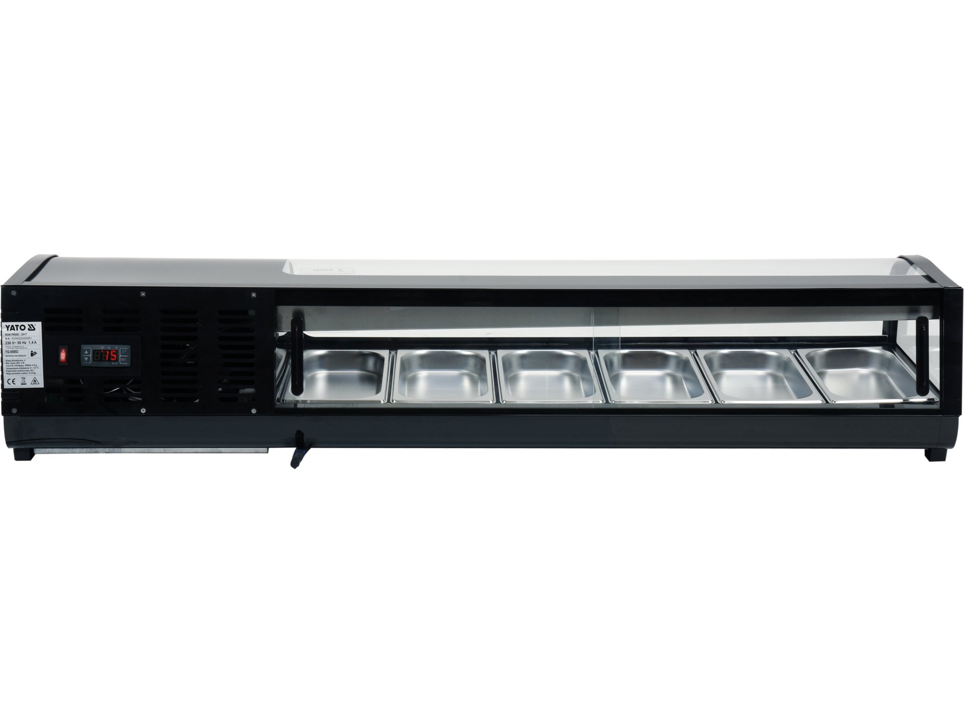 Vitrină frigorifică profesională 153×42×26,5 cm, cu 6 compartimente GN 1/3 și control electronic al temperaturii 0 ~ +12 °C.