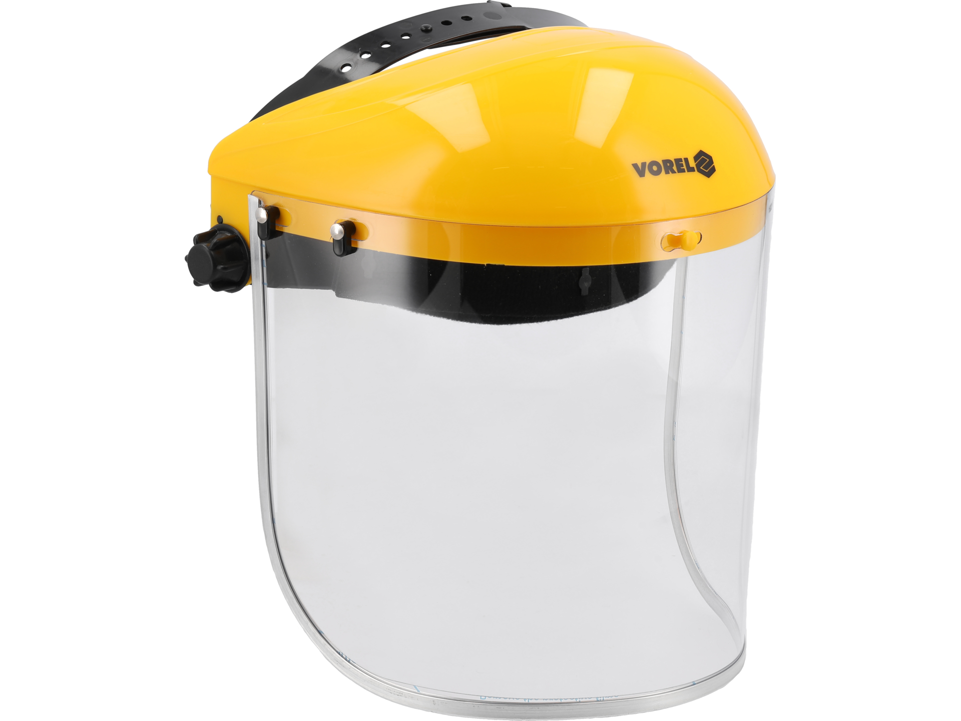 Vizieră de protecție din policarbonat cu suprafață anti-zgâriere din PP, dimensiuni 395×200 mm. Rezistență mecanică categoria B, clasa optică 1, categorie protecție II. Carcasă ajustabilă pentru confort maxim, conform standardului european EN 166:2001. Eficace împotriva stropirii de lichide și particulelor mici în medii industriale și de bricolaj.